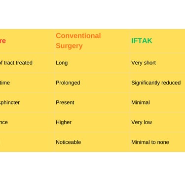IFTAK (Interception of Fistula Tract with Application of Ksharsutra) is an advanced, targeted technique that combines sound anatomical understanding, modern surgical principles, and the time-tested efficacy of Ksharsutra therapy.
